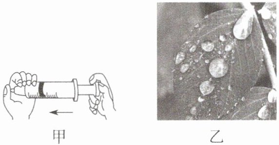 。如图乙所示,清晨草叶上的两颗露珠相互接近后,能自动结合为一滴较大的水滴,这一事实说明分子之间存在引力