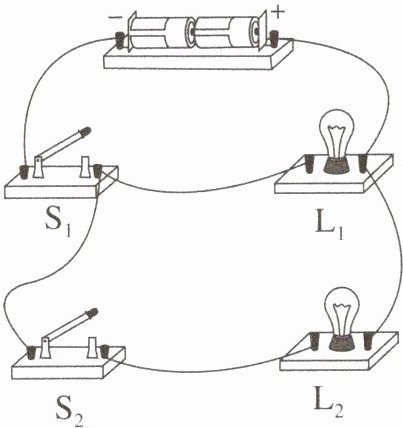 2. 如图所示的电路中,若 $ L_{2} $ 的灯丝断了,而电路其他部分完好,则开关 $ S $ 闭合后(