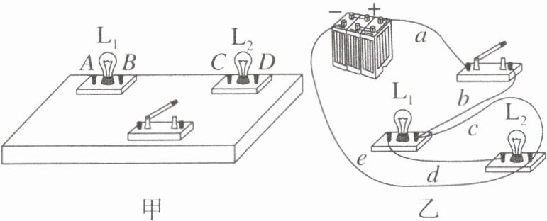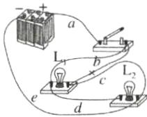 ②对于这个电路,只须拆除______(选填“ $ a $”“ $ b $”“ $ c $”“ $ d $”或“ $ e $”)导线,就能成为一个正确的串联电路。