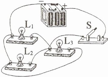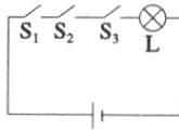 5. 学校组织演讲比赛,请了三个评委,三个评委各自控制一只开关,必须三个评委都通过,灯才会亮,才可进入复赛。现给你一个小灯泡、三个开关、一节干电池及导线若干,请你在虚线框内画出符合上面要求的投票器电路图。
