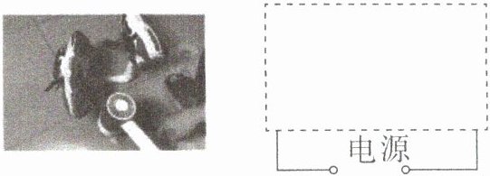 14. (2024 山西中考节选)在项目化学习中,科技小组的同学给旧电吹风加装两根塑料管改装成湿鞋烘干器,如图所示,可实现冷风吹干和热风烘干两种功能。其内部电路是由一个发热电阻($—□—$)、一个电动机($—M—$)和两个开关组成的并联电路。请你在虚线框内画出烘干器内部电路图。(发热电阻不能单独工作出现“干烧”现象)