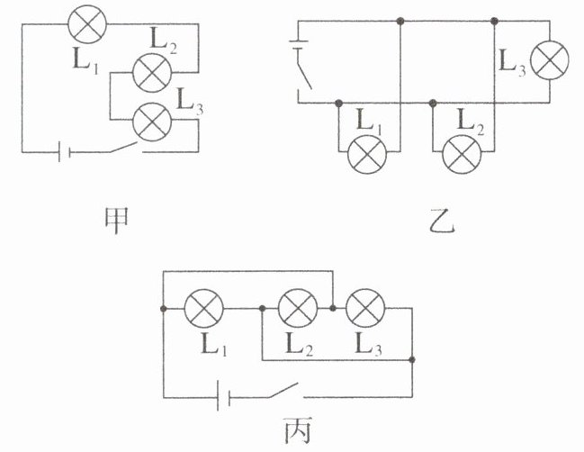 联,图丙中三个灯泡并