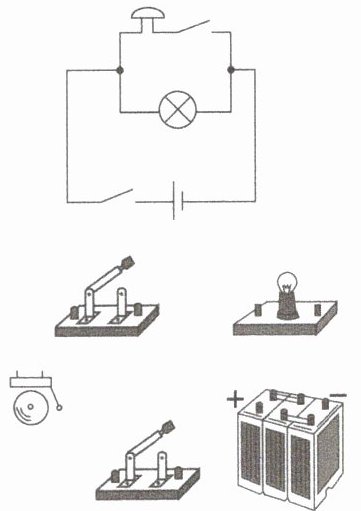 9. 根据如图所示的电路图,用笔画线表示导线,将元件连接起来。