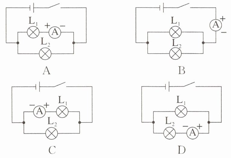 5. 如图所示,电流表能直接测量出通过灯 $ L_1 $ 的电流的电路图是(