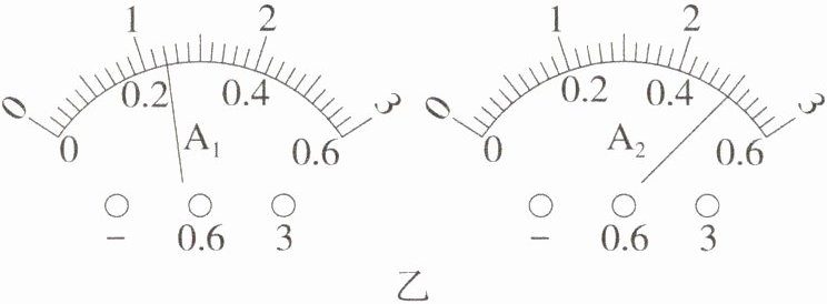 8. 用电流表测量小灯泡的电流,如图甲所示,发现通过灯泡 $ L_1 $ 的电流比通过灯泡 $ L_2 $ 的电流大,电流表的示数如图乙所示,则灯泡 $ L_1 $ 中的电流是