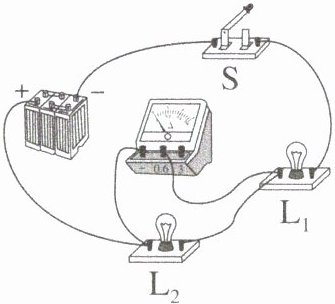 (2)如果要用电流表测通过 $ L_1 $ 和 $ L_2 $ 的总电流,且只允许移动一根导线,应将导线