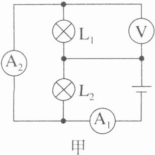 6. (2025威海期末)如图甲所示的电路中,电压表示数如图乙$,A_1、$$A_2$两表示数如图丙所示,则通过$L_2$的电流为
