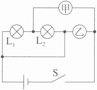 3. 如图所示电路,甲、乙为电流表或电压表。闭合开关S后,要使小灯泡$L_1、$$L_2$均能发光并且组成并联电路,则(
