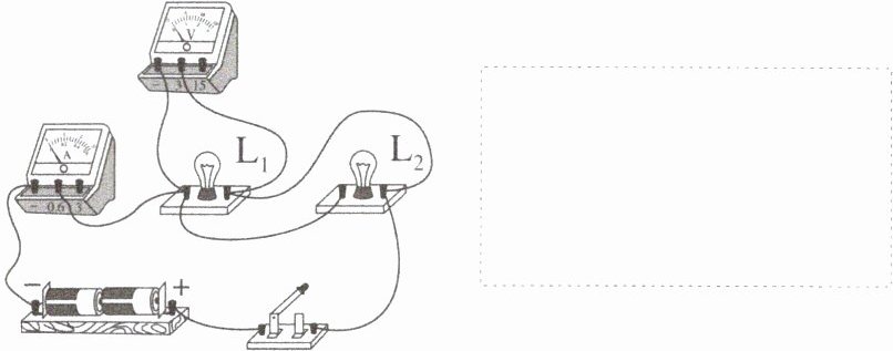 (2)请你在实物图上只改动一根导线,使电压表能够测出$L_1$两端的电压。(要求:在需要改动的导线上画“×”,用笔画线代替导线将改动后的导线画出,导线不许交叉)