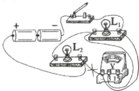 8. 一位同学用灯泡$L_1$和$L_2$组成了串联电路,他连接的电路如图所示。