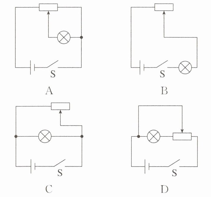 8. 如图所示,下列用滑动变阻器改变灯泡亮度的设计电路中,正确的电路图是(