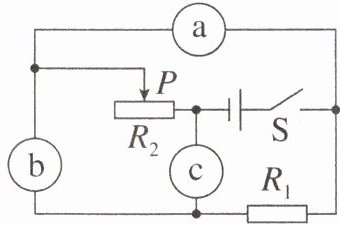 2. 如图所示,a、b、c 是电流表或电压表,要使$ R_1$与$ R_2$并联,且闭合开关后电表的示数正常,则下列说法正确的是(