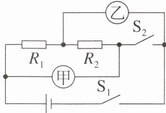 联。当甲、乙均为电压表且开关$ S_1、$$S_2$都闭合时,电阻$ R_1、$$R_2$连接方式是串