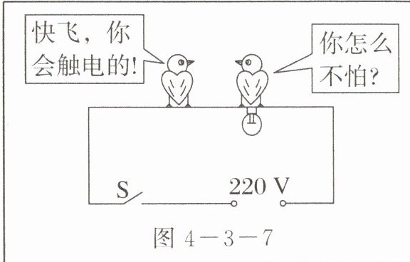 1. 如图所示,开关闭合后,左边的小鸟不会触电,而右边的小鸟会发生触电事故,这是因为导线两端