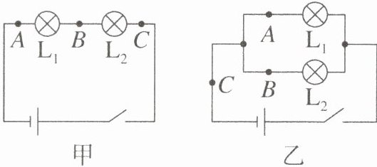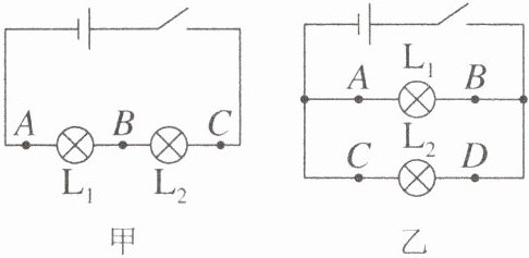 联进行测量。如图甲所示,分别测出A与B、B与C以及A与C之间的电压进行比较;如图乙所示,分别测出AB、CD两段电路两端的电压,并和电源电压进行比较。4. 实验步骤和注意事项