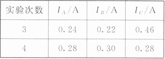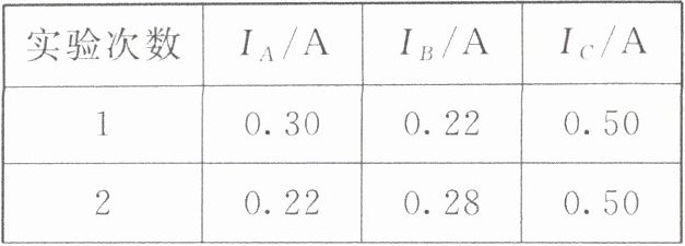 的电流。(2)该小组同学换用不同规格的小灯泡进行实验,用电流表多次测A、B、C三点电流,记录实验数据如下表。