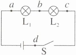 11. 在电学实验中,遇到电路故障时常用电压表来检测。如图所示,电源电压恒为$4.5\mathrm{V}$,闭合开关后两灯均不亮,用电压表先后测得$ad$、$ac和bc两端电压均为4.5\mathrm{V}$,则故障可能是(