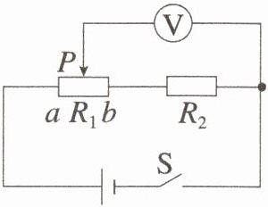 2. 如图,滑动变阻器$R_{1}的电阻变化范围是0\sim 200\Omega$,电阻$R_{2}= 400\Omega$,电源电压是$6V$且保持不变。闭合开关S,当滑动变阻器的滑片从a端滑到b端时,电压表示数的变化范围是(