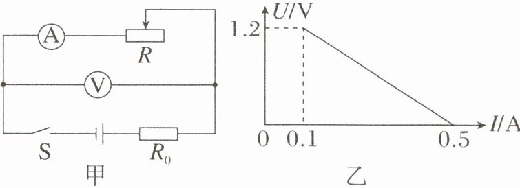 3. (2024临沂中考)闭合如图甲所示电路的开关,将滑动变阻器的滑片由最右端移到最左端的过程中,电压表与电流表的示数变化的图像如图乙所示。则定值电阻$R_{0}$的阻值为