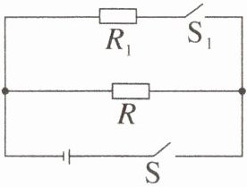 (2) 同时闭合开关 $ S $、$ S_1 $,若通过干路的电流为 1.6 A,求通过电阻 $ R_1 $ 的电流和电阻 $ R_1 $ 的阻值。
