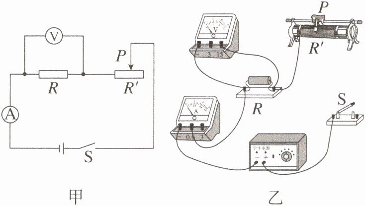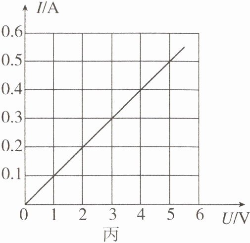 ④ 闭合开关,移动滑片,多次改变定值电阻两端的电压和通过它的电流。记录数据并绘制如图丙所示的$I-U$图像。分析图像可得:电阻一定时,______