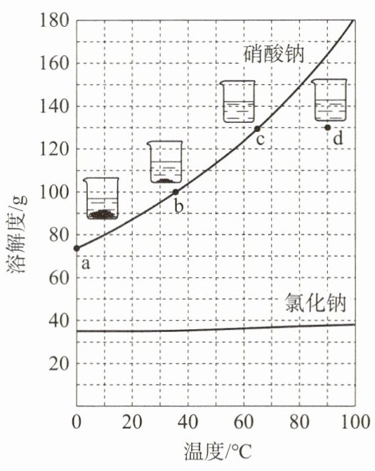 18. 硝酸钠和氯化钠的溶解度曲线如右图所示,其中a、b、c、d四点表示同一杯硝酸钠溶液随温度变化的情况。