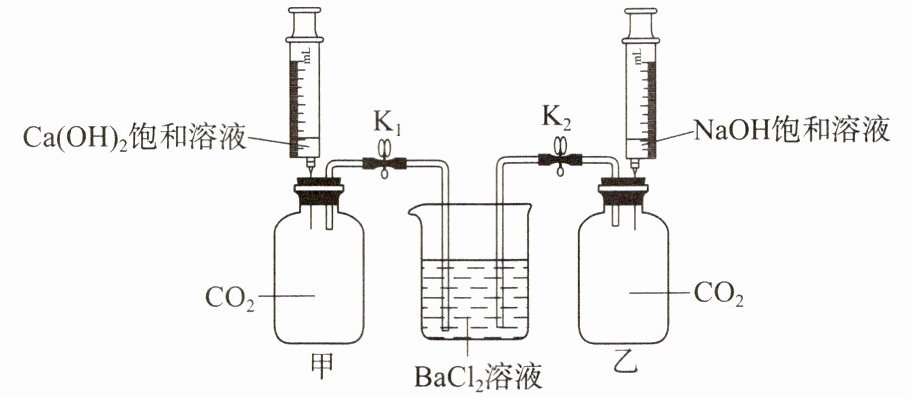 10. 产生白色沉淀 烧杯中有大量液体流入乙中,并产生白色沉淀 2NaOH + CO₂ = Na₂CO₃ + H₂O 氢氧化钠饱和溶液比氢氧化钙饱和溶液吸收二氧化碳的效果好(合理即可)