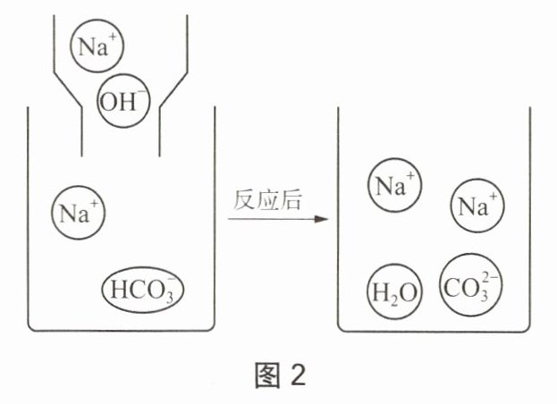 (2)图2是向NaHCO₃溶液中滴加NaOH溶液的反应微观示意图,请推测向NaHCO₃溶液中滴加Ca(OH)₂溶液,可以观察到的现象是