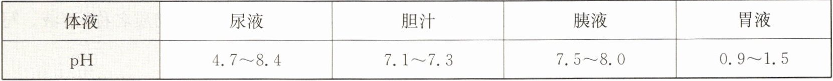 8. 人体部分体液的正常pH范围如下表所示。正常情况下,下列说法中错误的是(