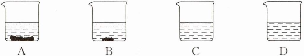 11. 室温下,分别向四个装有等质量水的烧杯中加入硝酸钾固体,且所加固体的质量依次减少,充分溶解后如图所示,回答下列问题。