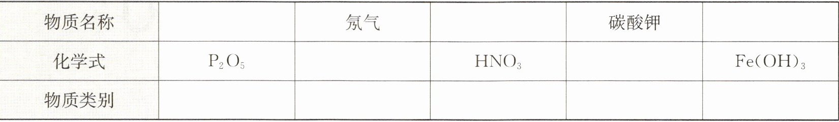 |物质名称|五氧化二磷| |硝酸| |氢氧化铁|