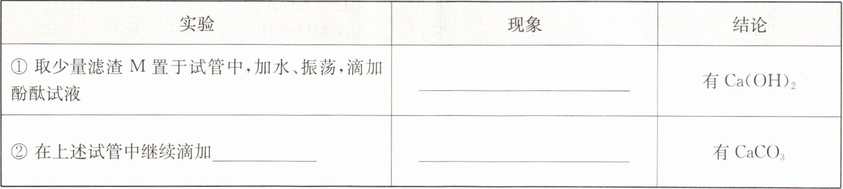 小组同学猜测滤渣 M 的成分可能是 $Ca(OH)_2$ 和 $CaCO_3$,设计如下实验进行验证。