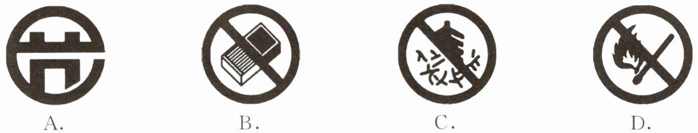 4. 储存易燃物和易爆物的厂房需要有明显的安全标志。下列图标中不属于消防安全标志的是(