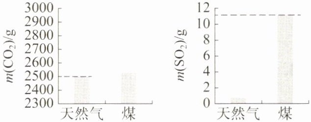 、天然气等。(2) 充分燃烧1kg天然气和1kg煤产生CO₂和SO₂的质量如右边的两幅图所示。