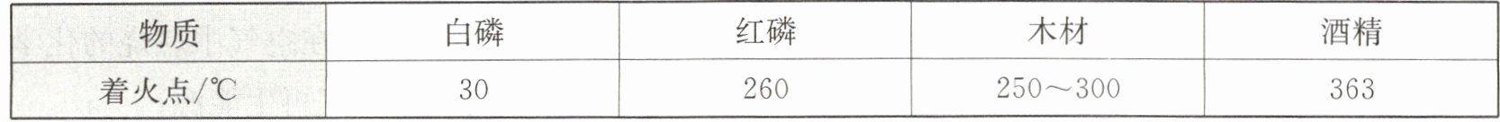 5. 通常情况下,几种物质的着火点如下表所示。结合表中所给的信息,下列说法中正确的是(