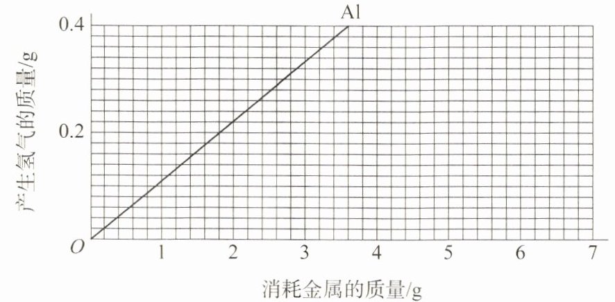 (3) 铝与足量稀硫酸反应产生氢气的质量与消耗铝的质量关系曲线如下图所示,在图中画出锌与足量稀硫酸反应产生氢气的质量与消耗锌的质量关系曲线。