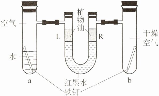 6. 如图所示是探究铁生锈条件的装置,调节 L 端与 R 端的液面高度一致,塞紧木塞,一周后观察。下列推断中正确的是(