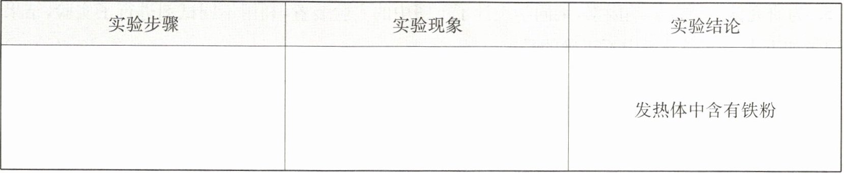 (1) 甲同学用磁铁吸引了部分发热体内固体粉末,证明发热体内含有铁粉。乙同学认为该方法并不能证明发热体中含有铁粉,因为