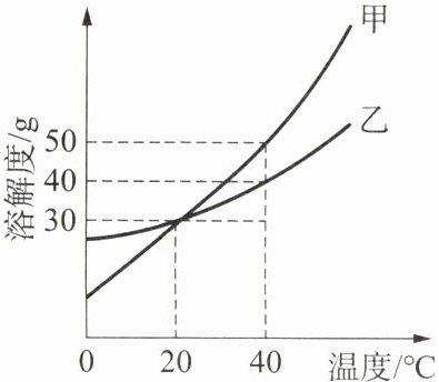 D.将 $ 40^{\circ} \mathrm{C} $ 时乙的饱和溶液降温至 $ 20^{\circ} \mathrm{C} $,得到的仍然是饱和溶液