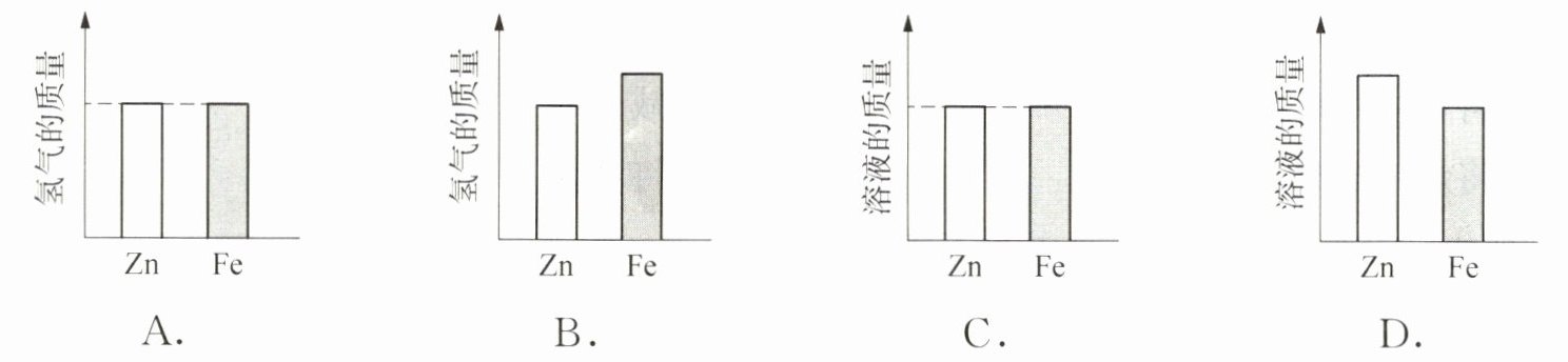 13. 将等质量的$Fe$、$Zn$分别放入质量和溶质质量分数均相等的两份稀硫酸中,反应结束后,以下图示不可能的是(