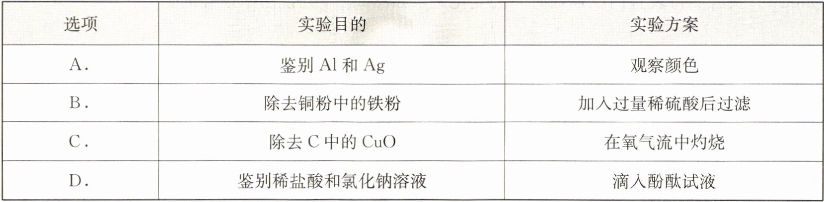 12. 下列实验方案能达成实验目的的是(