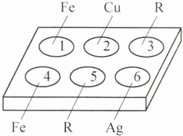 ③若只选用两个孔穴比较就能得出$R$、$Cu$、$Ag$三种金属的活动性顺序,这两个孔穴的编号是