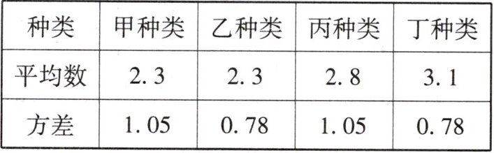 4. 科学家同时培育了甲、乙、丙、丁四种花,下表记录了 4 种花开花时间的平均数和方差,则开花时间最短的并且最平稳的是 (