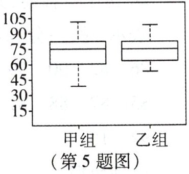 5. 已知甲、乙两组人数相等,在一次数学竞赛中两组成绩(满分120分)的箱线图如图所示,下列说法正确的是(