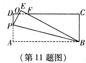 11. 如图,在长方形 ABCD 中,$AB= 12,BC= 5,$点 P 为 AD 上一点,将$\triangle ABP$沿 BP 翻折至$\triangle EBP$,PE 与 CD 相交于点 O,BE 与 CD 相交于点 F,且$OP= OF$.