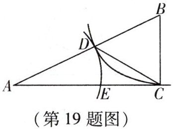 19. (10 分)如图,在 $ \triangle ABC $ 中,$ \angle ACB = 90^{\circ} $,以点 $ B $ 为圆心,$ BC $ 长为半径画弧,交线段 $ AB $ 于点 $ D $,以点 $ A $ 为圆心,$ AD $ 长为半径画弧,交线段 $ AC $ 于点 $ E $.
