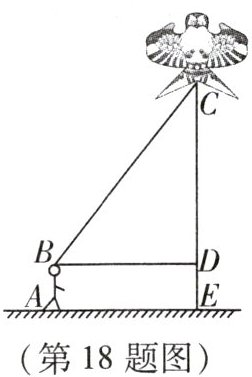 18. (10 分)“儿童散学归来早,忙趁东风放纸鸢.”又到了放风筝的最佳时节,小明和小亮学习了“勾股定理”之后,为了测得风筝的垂直高度 $ CE $(如图),他们进行了如下操作: