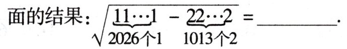 $\sqrt{\underbrace{11\cdots1}_{2026 个1} - \underbrace{22\cdots2}_{1013 个2}} = \underbrace{33\cdots3}_{1013 个3}$。