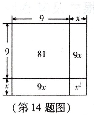 根据示意图,得图中正方形的面积$S_{正方形}= 81+2×9x+x^{2}$,