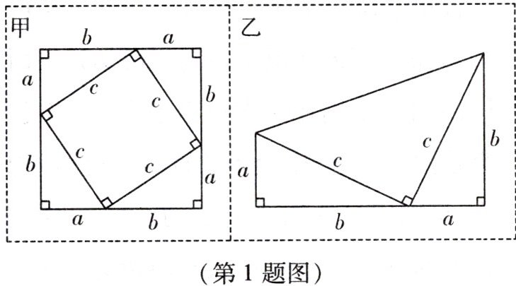 1. 课堂上,王老师给出如图所示甲、乙两个图形,能利用面积验证勾股定理$a^{2}+b^{2}= c^{2}$的是(